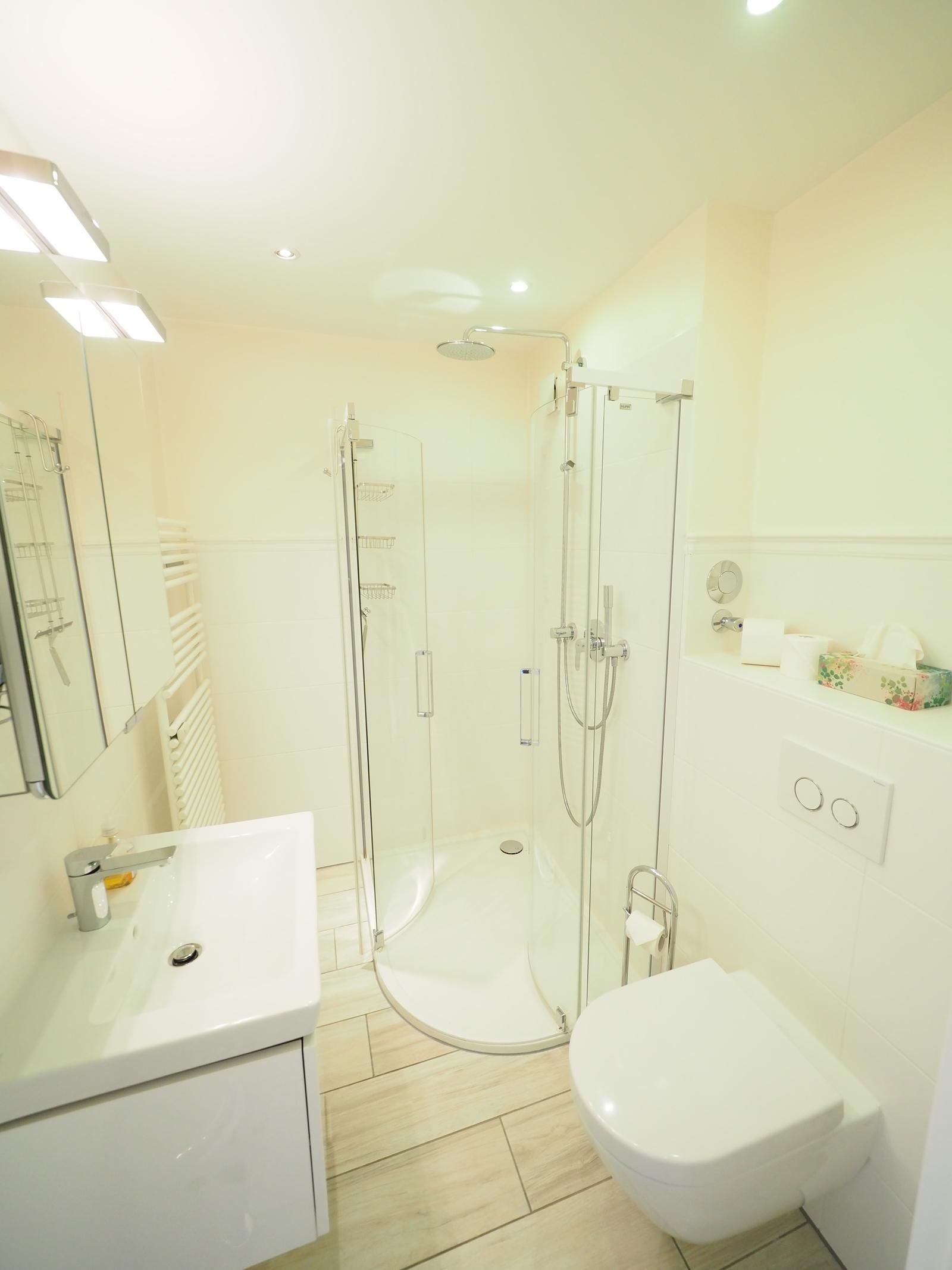 perfekt für Freunde oder Familienmitglieder. Badezimmer: Ein modernes Duschbad