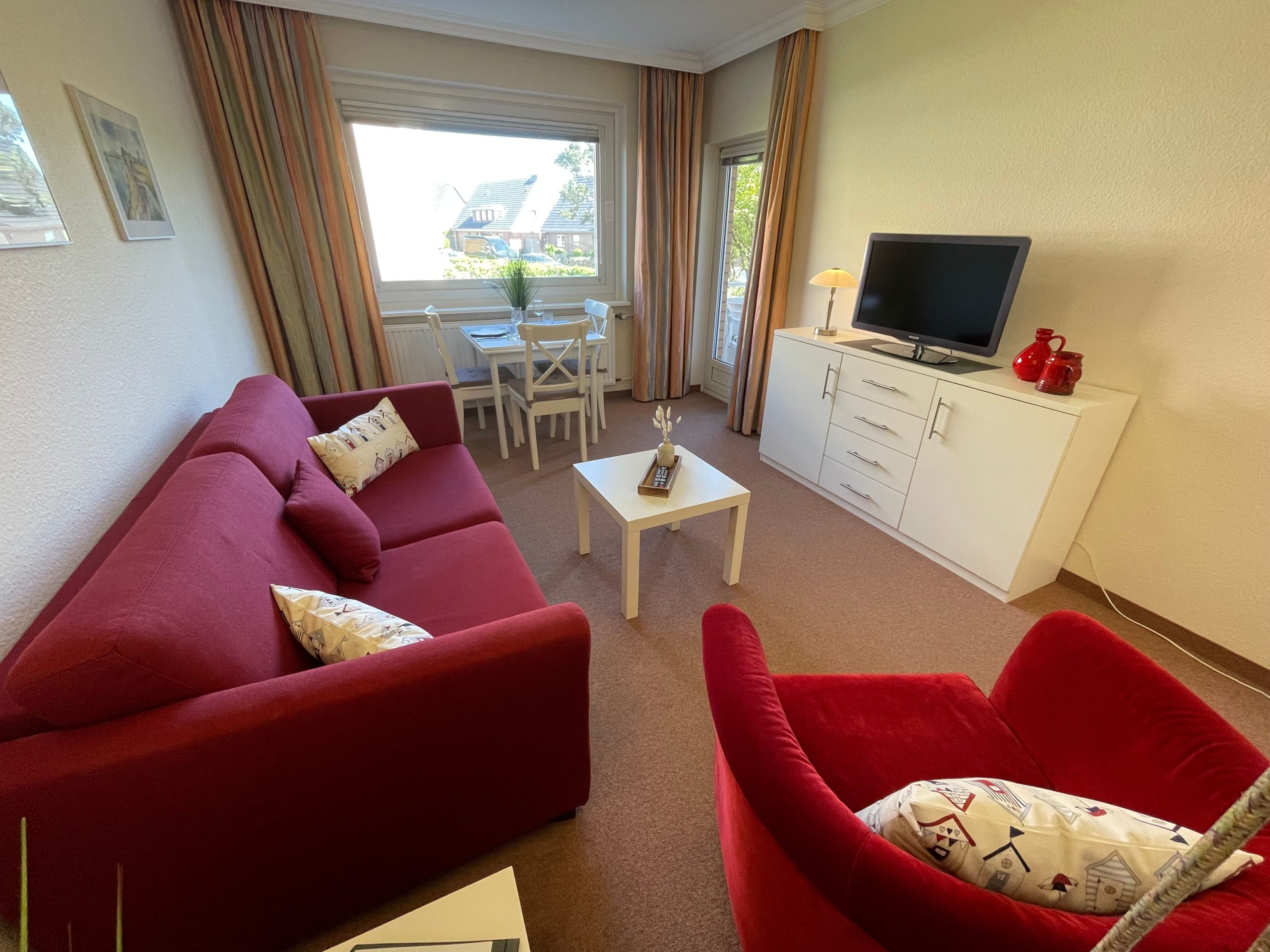 mit einer bequemen Schlafcouch, LCD-TV, Radio und einer Essecke zum Entspannen