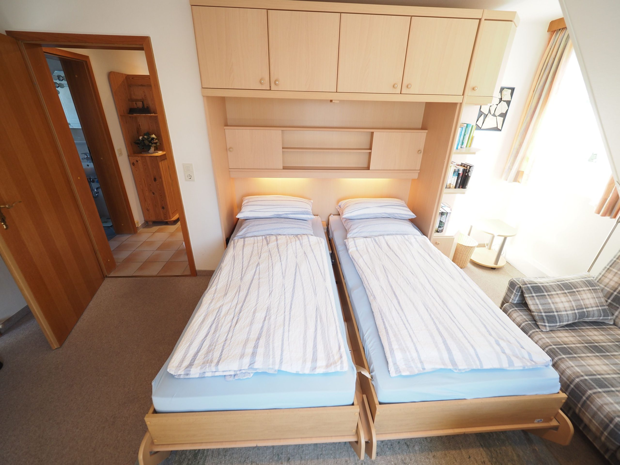 eine bequeme Sitzecke und ein praktisches Schrankbett...